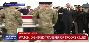 President Trump attends the dignified transfer of the six military members killed during the ongoing conflict in Iran. The U.S. troops were killed in a missile strike at a U.S. facility in Kuwait.